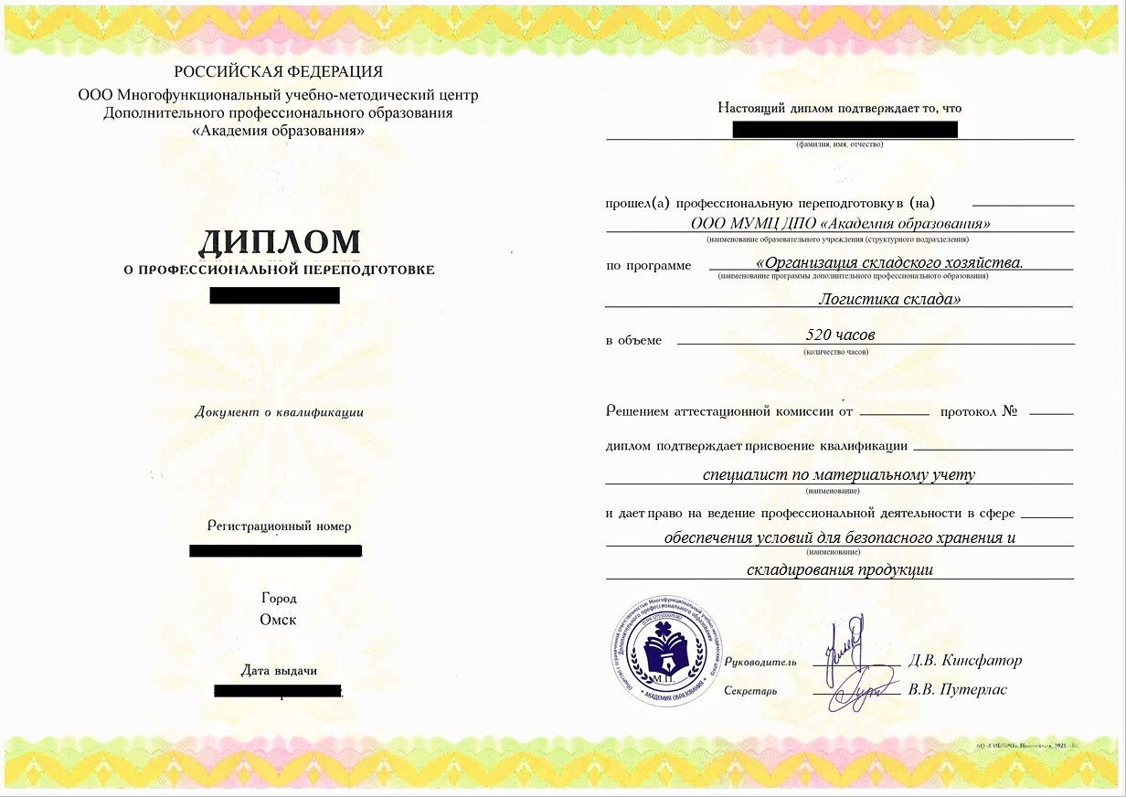 • Диплом о профессиональной переподготовке установленного государством образца. Срок действия: бессрочно